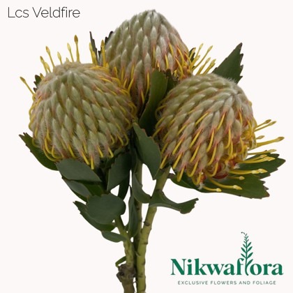 | Uses: | Leucospermum 'Veldfire', a cultivar of the Red pincushion protea, is primarily used as a garden ornamental, cut flower, and for attracting birds and pollinators due to its striking red and yellow flower heads and evergreen foliage. |