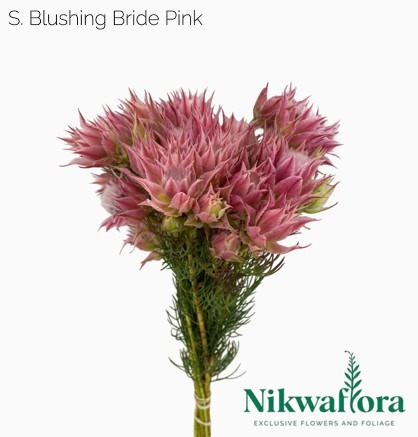 | Uses: | The "Blushing Bride" flower, botanically known as Serruria florida, is a popular choice for weddings and other romantic occasions due to its delicate, romantic appearance and is often used in bouquets, centerpieces, and even corsages and boutonnieres. |